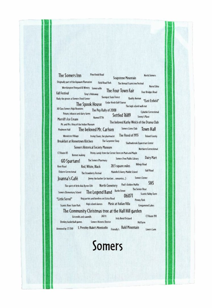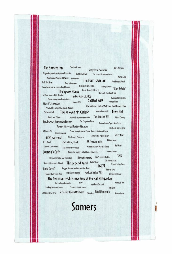 This cotton tea towel is like a trove of trivia, folklore, and nostalgia of Somers!